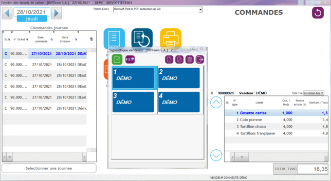 Lancement de l'impression de la commande sur l'imprimante sélectionnée