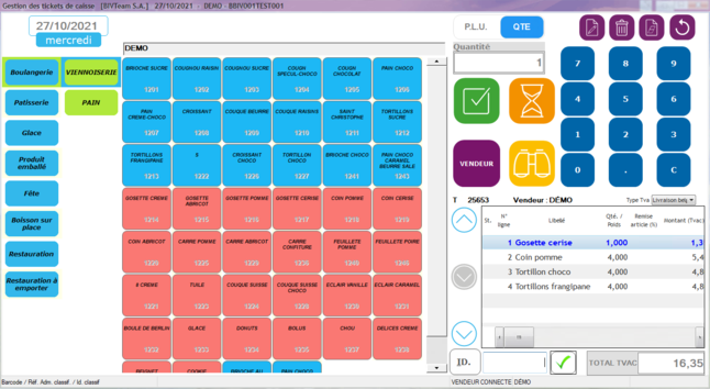 Saisie du vendeur qui reprend la commande