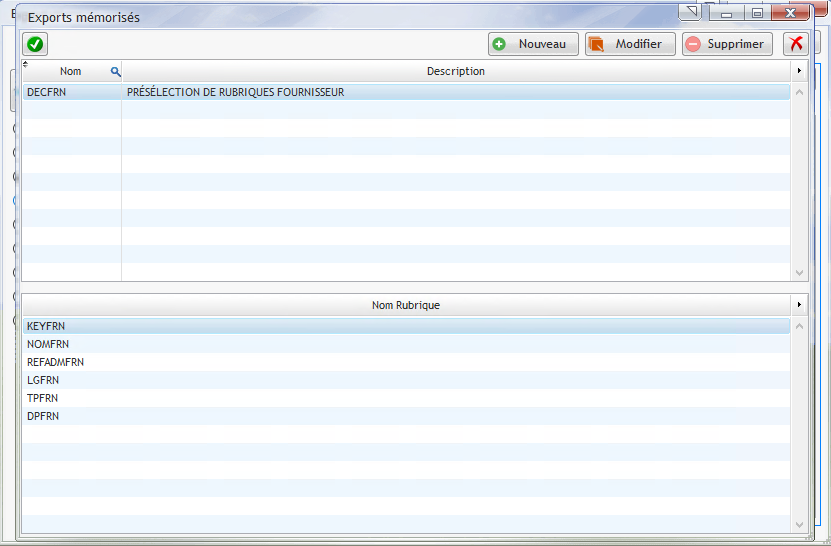 Ce bouton permet de rechercher une préselection sauvegardée de rubriques à exporter: